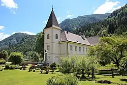 Die Kirche wurde 1826 von Georg Huebmer als Volksschule und Bethaus erbaut und bildet mit dem Pfarrhaus einen Gebäudekomplex. 1840 wurde das Gebäude aufgestockt und 1910 ein Turm über einem bestehenden Erker aufgesetzt.