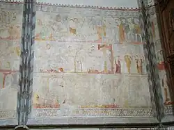 An der Nordseite des Chors sind Reste farbenfroher gotischer Fresken aus der Zeit um 1380 zu sehen. Sie zeigen das Leben und die Passion Jesu Christi sowie verschiedene Heilige. Bei der Sakramentsnische wurde eine Engelsgestalt freigelegt.