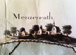 Nach Ende des Dreißigjährigen Krieges und nach Abschluss des Westfälischen Friedens von 1648 dauerte es noch bis zum Religionsvergleich vom 26. April 1672,[13] bis den Lutheranern erneut das Recht auf öffentliche Religionsausübung gewährt wurde.[14] 1683 konnte die lutherische Gemeinde, die seit 1655 mit der lutherischen Gemeinde in Gemünd verbunden war, eine erste eigene Kirche im ungefähr 1,5 Kilometer nordöstlich von Monschau gelegenen Weiler Menzerath bauen, wohin die Gemeinde nach dem Verbot der Gottesdienste in der Stadt Montjoie bereits 1622 in eine Scheune ausgewichen war. Am 15. August 1683 wurde diese Kirche mit einem Gottesdienst feierlich eröffnet.[15] Die Menzerather Kirche wurde 1824 wegen Baufälligkeit geschlossen und schließlich 1831 abgerissen.[16]