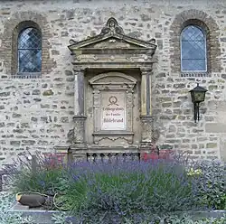 In der Nähe des Eingangs zur Kirche befindet sich das Grabmal der Familie Hildebrand, das 1875 entstand. Die Familie war zeitweise Eigentümer der Böllberger Mühle und damit auch Patron der Kirche. An der Kirche befindet sich eine Gedenktafel für die Gefallenen des Ersten Weltkrieges.