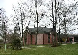 - …und hätte der Liebe nicht ist eine dreiteilige abstrakte Betonstelenkonstruktion der Künstlerin Birgit Knappe und nimmt damit Bezug auf ein Dietrich-Bonhoeffer-Zitat.[24] Die Stelen befinden sich vor dem Haus 8 auf dem Gelände.
