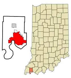 | Lage von Evansville im Vanderburgh County und in Indiana | |