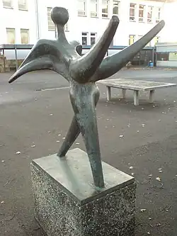 Ewald Brandt schuf insbesondere stark abstrahierende Plastiken, von denen einige lebensgroße Arbeiten auf Schulhöfen in Hannover stehen,[1] etwa