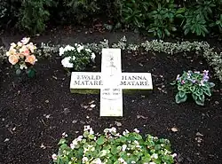 Ab 1947 bekam Mataré zahlreiche öffentliche, darunter bedeutende kirchliche Aufträge, die ihm internationale Anerkennung brachten, wie die Bronzetüren für das Südportal des Kölner Doms, das Westfenster des Aachener Doms, die Portale der Weltfriedenskirche in Hiroshima und das Salzburger Domportal. 1954 schuf er auf Anregung von Hans Kollwitz mit seinen Meisterschülern Erwin Heerich und Joseph Beuys eine Nachbildung der trauernden Eltern von Käthe Kollwitz für die Gedenkstätte Alt.St. Alban am Gürzenich in Köln. 1949 gehörte er zu den Mitbegründern der Neuen Rheinischen Sezession[15]. Ab 1951 war Mataré im Vorstand, von 1961 bis 1965 im Ehrenvorstand des Deutschen Künstlerbundes[16]. Er erhielt nationale und internationale Ehrungen und nahm 1955 und 1959 an der documenta I und II in Kassel teil. Auch nach der Emeritierung 1957 behielt er sein Atelier an der Kunstakademie Düsseldorf. Er starb 1965 an den Folgen einer Lungenembolie. Das Grab von Mataré und seiner Frau befindet sich auf dem Friedhof in Meerbusch-Büderich. Es ist seit 2009 Ehrengrab der Stadt. Das Geburtsjahr 1892 von Hanna auf dem Grab ist möglicherweise nicht korrekt, die Deutsche Biographie gibt 1891 an.[17]