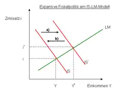 - ↑ Nur in dem Fall, wenn die kreditfinanzierten Staatsausgaben in das Ausland abfließen, sei diese Postulation valide. Der Anteil, der im Inland verbleibt verändert das Kapitalangebot ja nicht, keine IS-Kurve verschiebe sich dann nach rechts.