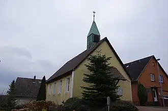 - Die evangelisch-lutherische Johanniskapelle ist ein 1961 errichteter, schlichter Putzbau auf Feldsteinsockel, der außen durch einen kleinen Dachreiter und innen durch eine gewölbte Holzdecke ausgezeichnet ist. Es handelt sich um einen Ersatzbau für eine 1732 errichtete und 1960 abgebrochene Fachwerkkapelle.[7][8][9]