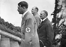 Am 12. Februar 1938 kam es in Obersalzberg zum Zusammentreffen zwischen Hitler und dem österreichischen Bundeskanzler Kurt Schuschnigg, dem unter der Drohung eines Einmarschs mehrere Forderungen gestellt wurden. Das dabei ausgehandelte Berchtesgadener Abkommen war der erste Schritt zum Anschluss Österreichs an das Deutsche Reich einen Monat später.[11]