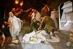 Zum anderen soll das Kloster in der Nacht vom 11. auf den 12. November 1003 überfallen worden sein, Benedikt und Johannes wurden in ihren Zellen mit dem Schwert getötet. Isaak wurde in der Zelle nebenan ermordet. Matthäus wurde von Speeren durchbohrt, als er sich in die Kirche retten wollte. Christian wollte das Kloster verteidigen und wurde ebenfalls umgebracht, er ist in der Nähe des Heiligtums aufgehängt worden.