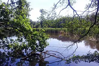 Der etwa 500 Meter entfernt gelegene Sandteich ist ebenfalls ein Pachtgewässer des Deutschen Anglerverbandes. In dem als Aufzuchtgewässer genutzten See ist sowohl das Angeln als auch das Baden verboten. Der Sandteich ist ebenfalls von Eichen, Birken, Eschen und anderen Laubgehölzen umgeben. Im Uferbereich wächst der Wald-Frauenfarn.