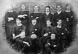 Spieler der Royal Engineers in der Pokalsaison 1874/75. Von links nach rechts (stehend): Mulholland, Onslow, Stafford, Rawson, Mein, Wingfield; (mittig): Ruck, Merriman, Tailyour, Donop; (unten): Sim, Jones.
