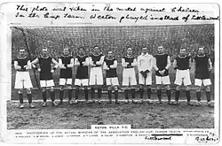 | Sam Hardy – Tom Lyons, Tommy Weston – Tommy Barber, Jimmy Harrop, Jimmy Leach – Charlie Wallace, Clem Stephenson, Harry Hampton, Harold Halse, Joe Bache Cheftrainer: George Ramsay |