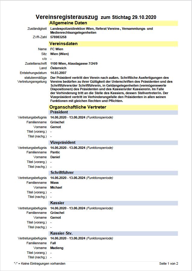 - ↑ FC Wien: (Vereinsregisterauszug)