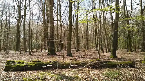 ![]() Liegendes Totholz im Buchenwald | ||
