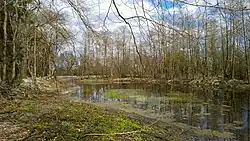 Dies betrifft weitergehende Entwicklungsmaßnahmen mit der Priorität 2 in den SHLF-Flächen im Süden und Osten des FFH-Gebietes. Zum einen soll die Beseitigung der Beschattung von Kleingewässern zur Erhöhung der Artenvielfalt an deren Uferzonen beitragen und der Ankauf von Flächen am Waldrand zur Schaffung von Schutzstreifen zur Verhinderung von Nährstoffeinträgen aus der intensiven Landwirtschaft der Umgebung dienen.[30]