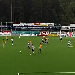 Jerv in den gelben Trikots bei einem Heimspiel gegen Hønefoss BK