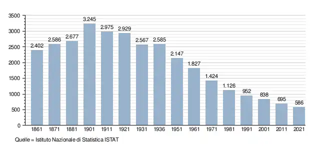 Im letzten Jahrhundert hat die Gemeinde über 80 % ihrer Gesamtbevölkerung verloren.