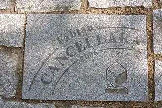 Fabian Cancellara hat zum Teil italienische Wurzeln. Sein Vater Donato wanderte 1965 im Alter von 18 Jahren von San Fele in der Region Basilicata aus, um in Bern als Lüftungsmonteur zu arbeiten. Seine Mutter Rosa stammt aus der Ostschweiz und ist von Beruf Verkaufsangestellte.[124][125] Die zwei Jahre ältere Schwester Tamara war für kurze Zeit Radrennfahrerin und nahm als Juniorin an der Weltmeisterschaft 1997 teil.[126] Cancellara spricht Deutsch, Französisch, Italienisch und Englisch. Die Sprache seines Vaters beherrschte er jedoch erst, als er als Profi in Italien tätig war; im Elternhaus war selten Italienisch gesprochen worden.[20] Seit August 2006 ist er mit der sechs Jahre älteren Stefanie Hauser verheiratet, die er im Sommer 1999 kennengelernt hatte. Die erste Tochter wurde im Oktober 2006 geboren[127], die zweite im Juli 2012.[128]