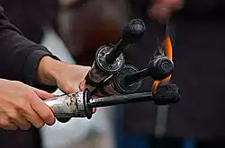 Daneben werden ähnliche, aber speziell geformte Fackeln für das Feuerschlucken verwendet.