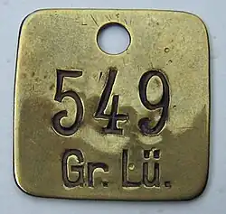 - ↑ a b c d Fritz Baum: Einrichtungen zur Überwachung der Arbeiter in der Grube und Kontrollmaßnahmen zur Gewährleistung einer achtstündigen Ruhezeit. In: Glückauf, Berg- und Hüttenmännische Zeitschrift. Verein für die bergbaulichen Interessen im Oberbergamtsbezirk Dortmund (Hrsg.), Nr. 25, 44. Jahrgang, 20. Juni 1908, S. 889–895.