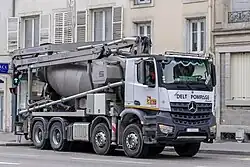 Eine Fahrmischerbetonpumpe (FBP) ist eine Kombination aus Betonpumpe und Fahrmischer. Daher ist es möglich, den Beton in der Mischertrommel zu transportieren und ihn anschließend mit derselben Maschine mit Hilfe einer am Fahrzeug hinten angebauten Betonpumpe und einem Betonverteilermast an den Einbringungsort zu fördern.