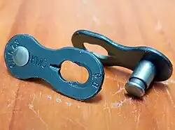 Ein Kettenschloss ersetzt die Außenlaschen und Bolzen eines regulären Kettengliedes und dient zum Verschließen und zum Austausch der Kette.