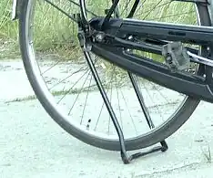 Sehr sicher steht das Fahrrad auf einem zweibeinigen Ständer, solange der Boden flach ist. Dieser Ständer wird üblicherweise unter dem Tretlager angebracht und hebt im ausgeklappten Zustand ein Rad des Fahrrades in die Luft.
