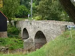 Die in der Nähe der Ortsgrenze von Falkenberg die Bobritzsch überspannende historische Bogenbrücke wurde um 1567 auf Befehl des Kurfürsten August von Sachsen (1553–1586) in Stein ausgeführt. Neben der Bogenbrücke befindet sich die frühere Erblehnmühle, die bis 1545 zum Erbgericht gehörte. Weitere Mühlen in Falkenberg waren die Ölmühle (1947 stillgelegt) und die Börnermühle (1943 stillgelegt).