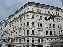 Carl Mayer erbaute 1902 das Eckhaus zur Biberstraße im späthistoristischen Stil mit abgerundeter Ecke und einer durch Lisenen, Balkonen und Erkern gegliederten Fassade. Den Dachausbau für eine Rechtsanwaltskanzlei führte 1987–1988 Coop Himmelb(l)au durch. Dabei handelt es sich um eine dekonstruktivistische Stahl- und Glaskonstruktion mit Sitzungssaal und Büroräumen. Ein schmiedeeisernes Tor führt in ein stuckiertes Foyer mit Marmorsockel. Bemerkenswert ist der Aufzug.