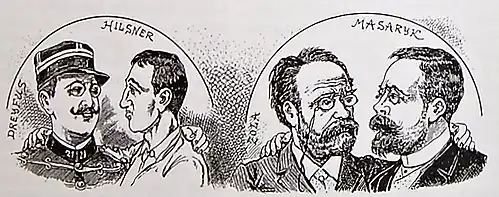 - ↑ Prozeß Hilsner. (…) Siebzehnter Verhandlungstag. In: Prager Abendblatt, Nr. 261/1900, 15. November 1900, S. 3 Mitte. (online bei ANNO).