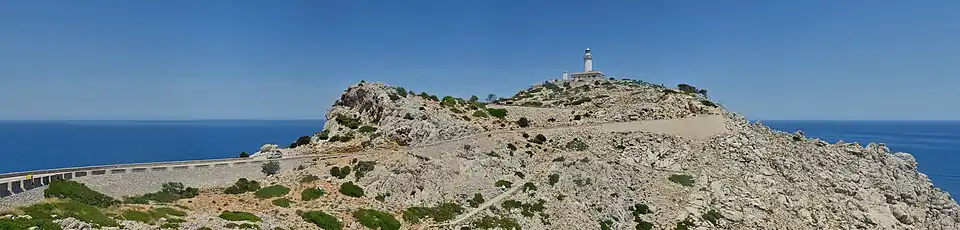 Der Far de Formentor (katalanisch) oder Faro de Formentor (spanisch) ist ein Leuchtturm auf dem gleichnamigen Cap de Formentor, dem nordöstlichsten Punkt der Halbinsel und dem nördlichsten Punkt der Insel Mallorca. Der Leuchtturm gilt als Sehenswürdigkeit und touristischer Anziehungspunkt der Insel. Er ist zudem einer von 13 sich in Betrieb befindlichen Leuchttürmen Mallorcas.[1] Die Kennung ist eine Gruppe von vier weißen Blitzen mit einer Wiederkehr von 20 Sekunden.