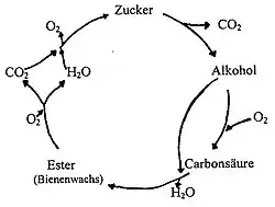 „Wir haben nun die Kohlensäure also kennen gelehrt von ihrer ersten Quelle, der Kerze, an und dann in ihrer wichtigsten physikalischen Eigenschaften, besonders in ihrer Schwere, und bei unsrer nächsten Zusammenkunft denke ich Euch zu zeigen, woraus sie besteht, und woher sie ihre Elemente nimmt. (...) Ich will eine Vergleichung anstellen zwischen der Verbrennung unserer Kerze und jener lebendigen Art von Verbrennung, die in unserem Körper vorgeht. Ja, in uns Allen findet ein lebendiger Verbrennungsprozeß statt, ganz ähnlich dem der Kerze. Die Vergleichung des menschlichen Lebens mit einer Kerze ist nicht nur im poetischen Sinne richtig; wenn Ihr mir folgen wollt, denke ich es Euch deutlich machen zu können, daß sie auch naturwissenschaftlich berechtigt und begründet ist.“