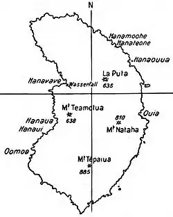 - ↑ Ralph Linton: Archaeology of the Marqueas Islands, Bernice P. Bishop Bulletin Nr. 23, Honolulu 1925, S. 181–185