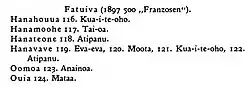 - ↑ Jean Louis Rallu: From decline to recovery: the Marquesan Population 1886–1945. In: Health Transition Review Vol. 2 (2) vom Oktober 1992), S. 177–194