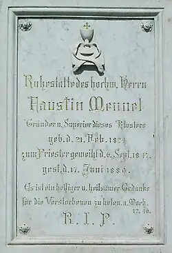 Am 17. Juni 1889 starb Faustin Mennel im Alter von 65 Jahren. Er ruht in einer Krypta unter dem Hochaltar der Klosterkirche St. Michael.