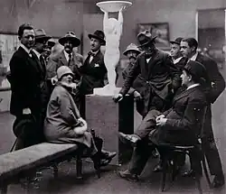 Saal VII des Salon d’Automne, Grand Palais, Paris, 1905. Jacqueline Marval sitzt links neben der Büste, rechts Jules Flandrin. Louis Valtat und Albert Marquet sind ebenfalls zu sehen.[5]