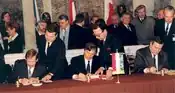 - Visegrád/Ungarn: Die Vertreter der Staaten Polen, Tschechoslowakei und Ungarn beschließen ein Freihandelsabkommen zwischen ihren Ländern. Weitere gemeinsame Ziele der Visegrád-Gruppe sind der Beitritt zu den Europäischen Gemeinschaften und die Mitgliedschaft im Militärbündnis NATO.[11][12]