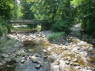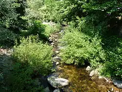 Zusammenfluss der Fecht (links) mit der Kleinen Fecht (rechts) in Munster (Haut-Rhin) | ||