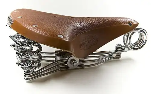 Ein Fahrradsattel mit Schraubenfedern hinten und Schenkelfeder vorn