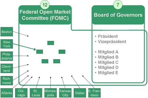 • besteht aus den sieben Mitgliedern des Gouverneursrates und fünf der zwölf Präsidenten der regionalen Reserve-Banken.[17]