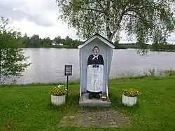 - Die Holzskulptur „Mor Johannas Mässingkruka“ aus dem Jahr 1956 steht am Fegen
