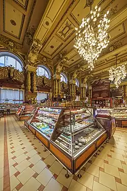 Nach Pjotr Jelissejews Tod im Jahre 1825 übernahmen seine Witwe und seine drei Söhne das Geschäft, und seit Ende des 19. Jahrhunderts führte Pjotrs Enkel, Grigori Grigorjewitsch Jelissejew, das Imperium an. Gerade auf seine Initiative entstand wenig später die Kette aus drei großen Feinkostläden. Der erste der drei war der Laden in Moskau, zwei Jahre später wurde sein Petersburger Pendant auf dem Newski-Prospekt eröffnet, etwas später entstand ein ähnlicher Laden in Kiew.
