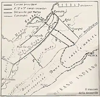- ↑ a b Alberto Alpozzi: Il tracciato della decauville und Il collaudo della decauville di genale. In: 'Come l'Italia modernizzò l'agricoltura in Africa' – 'Romanamente', Vol. 13 (auch als Video abrufbar), S. 15 und 18.