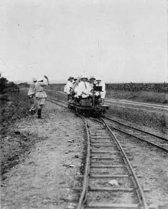 ![]() Trasse der Decauville-Bahn (gestrichelt)[1] | |||||||||||||||||||||||||||||||||