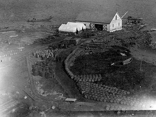 ![]() Pribilof-Inseln, Alaska Feldbahn vom Schiffsanleger durch das Lagerhaus zur Funkstation Fliegendes Gleis auf dem Schiffsanleger der Sankt-Paul-Insel, Pribilof-Inseln, Alaska Feldbahn vom Schiffsanleger durch das Lagerhaus zur Funkstation | |