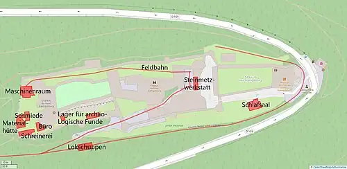 ![]() Ehemaliger Streckenverlauf um 1905 auf einer Karte von 2022[1] | |