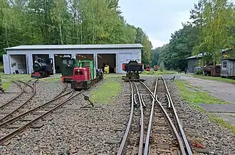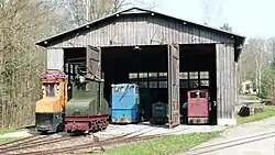 Eine Strecke mit Oberleitung ist nicht vorhanden. Die Lokomotiven sind in einer Halle untergestellt.[4][5] Diese besitzt vier Gleise mit einer Gesamtlänge von 60 Metern.