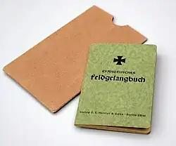 Evangelische Gesangbücher für den militärischen Gebrauch sind seit Beginn des 18. Jahrhunderts nachweisbar,[1] römisch-katholische seit dem Ende des 19. Jahrhunderts.[2] Evangelische und katholische Feldgesangbücher wie auch Zusammenstellungen jüdischen Militärliedgutes[3] gehörten zur soldatischen Ausrüstung im Ersten Weltkrieg. Im Zweiten Weltkrieg wurden die evangelischen und katholischen Gesangbücher von 1939 genutzt. Einige Liedtexte waren im Sinne der Nationalsozialisten verändert worden. So endete „Großer Gott, wir loben dich“ mit „Losungswort sei allzugleich: Treu zu Führer, Volk und Reich!“.[4]