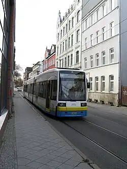 Drei der vier Straßenbahnlinien führen in der Goethestraße vom Marienplatz zum Platz der Jugend durch die Feldstadt.
