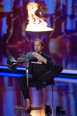 - ↑ a b c Bericht im Kulturteil der Mittelbayerischen Zeitung: Der Hornist, der mit den Füßen spielt vom 8./9. Juli 2017, Jg. 73, Nr. 155, S. 27.