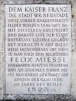 Am 23. Juni 1823 wurde im Beisein Mießls auf dem Dorfplatz von Felixdorf eine Statue des hl. Felix enthüllt.[6]